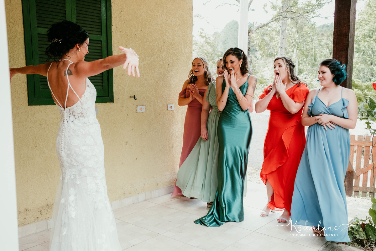 Para a Bel, o dia foi ainda mais especial, pois, após seis anos sem voltar ao Brasil, ela teve a oportunidade de reencontrar pessoas queridas e reviver memórias preciosas de sua terra natal. A emoção era visível em seus olhos, enquanto ela caminhava em direção ao altar, cercada por amigos e familiares que a apoiaram em cada passo de sua jornada. Esse reencontro de afetos, risos e abraços fez a cerimônia ainda mais tocante.
